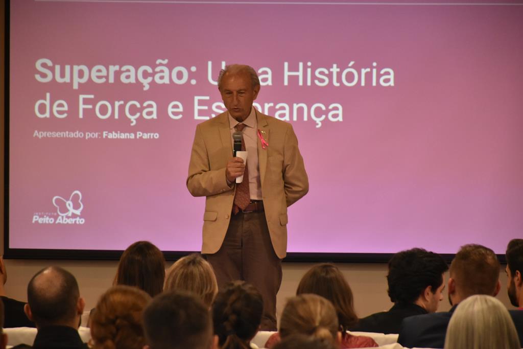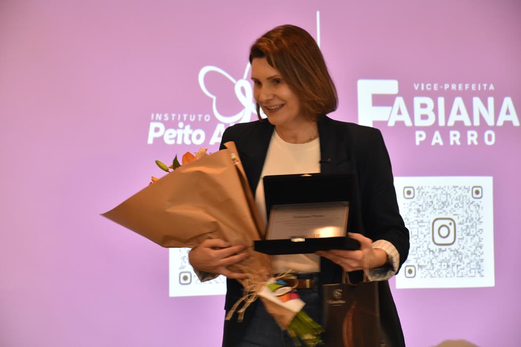 “Superação nasce quando a vida nos coloca diante de um limite e precisamos encontrar forças para seguir em frente”. Com essa declaração, Fabiana Parro, vice-prefeita de Paranaguá e fundadora do Instituto Peito Aberto, abriu sua fala na noite desta segunda-feira (13.10), durante o evento do Outubro Rosa, realizado na sede da Associação Comercial do Paraná (ACP), em Curitiba.Sob o título “Superação: uma história de força e esperança”, Fabiana emocionou o público ao transformar a dor em diálogo e o diagnóstico de câncer de mama em um chamado à vida. Ela compartilhou sua trajetória, marcada pela descoberta da doença aos 36 anos, e a forma como o câncer se tornou o ponto de virada de sua existência. “Foi um caminho difícil, mas se eu não tivesse passado por tudo que passei, eu não estaria aqui hoje. Eu era uma pessoa muito tímida, e o câncer me libertou disso”. Fonoaudióloga por formação, esposa de médico e mãe de dois filhos, Fabiana contou que o diagnóstico rápido foi determinante para sua cura, mas também a fez enxergar a desigualdade. “Eu percebi que muitas mulheres não têm esse acesso. Enquanto eu tive diagnóstico em duas semanas, outras esperam meses. Isso é cruel”.Entre risos e lágrimas, ela recordou o momento em que perdeu o cabelo por causa do tratamento e o medo de ser julgada. “Minha preocupação era aparecer careca na festa da minha filha. Por vergonha. Por quê? Porque ainda tem gente que acha que câncer é castigo”.  Relatou que a virada de chave veio de uma reação da filha: “Ela ganhou uma boneca careca e disse: ‘Mamãe, ela é igual a você!’. Naquele instante, entendi que o problema não estava no meu cabelo, estava no meu olhar, na minha mente”. Necessidade e prioridadeAo falar sobre o apoio da família, destacou o papel decisivo do marido: “Ele me disse: você tem uma escolha, pode ficar no quarto chorando ou pode levantar e viver. E eu decidi viver”.  Fabiana reforçou que sua luta não foi uma opção, mas uma necessidade. “Eu tinha dois filhos pequenos e um câncer agressivo. A vida me parou para que eu aprendesse o que realmente importa”. E lembrou do apoio da mãe e da sogra com os cuidados com os filhos, quando precisou parar de trabalhar e passar pelo tratamento. E contabilizou: “foram 16 sessões de quimioterapia, 35 de radioterapia e 5 cirurgias. Já fazem 13 anos”.Fabiana também abordou a importância de colocar a própria saúde como prioridade. “Quantas vezes sentimos algo e deixamos pra depois? A mulher precisa se colocar em primeiro lugar. Só 10% dos casos de câncer de mama são genéticos, o resto é sobre o que fazemos com a gente”.Lembrou que a dor na hora do exame, o medo do diagnóstico e de perder o controle da vida fazem com que muitas mulheres deixem de fazer o exames preventivos. Essas são dificuldades que devem ser superadas, pois é delas que encontramos a força transformadora para aceitar e continuar lutando”, frisou.  Ela contou que o grande questionamento que norteou sua trajetória foi: “Se eu não existisse, que falta eu faria? O que vai ficar é o legado, o que deixamos nas pessoas, nos gestos, nos sorrisos. Eu sou grata a Deus por ter tido o câncer. Ele me deu a chance de reencontrar a vida. Que a nossa passagem pelo mundo não seja apenas sobre existir, mas sobre fazer a diferença. Um sorriso que ilumina, um abraço que acolhe, um gesto de cuidar, isso é o que realmente transforma uma vida.”