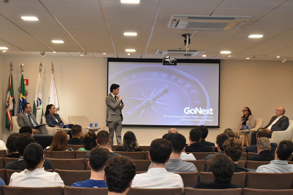 A apresentação ficou a cargo de Leonardo Navarrete, membro do CJE, que explicou como a ideia surgiu. Disse que participou de um fórum de sucessores e a experiência o fez perceber o quão limitado era seu entendimento sobre o papel do sucessor. “Percebi que se trata de um processo essencial de transição geracional, que exige preparo e responsabilidade”. Ele citou dados preocupantes, como o fato de 75% das empresas não chegarem à terceira geração, reforçando a importância de discutir o assunto no CJE e de levar seus próprios familiares ao encontro, visando profissionalizar a sucessão em casa.